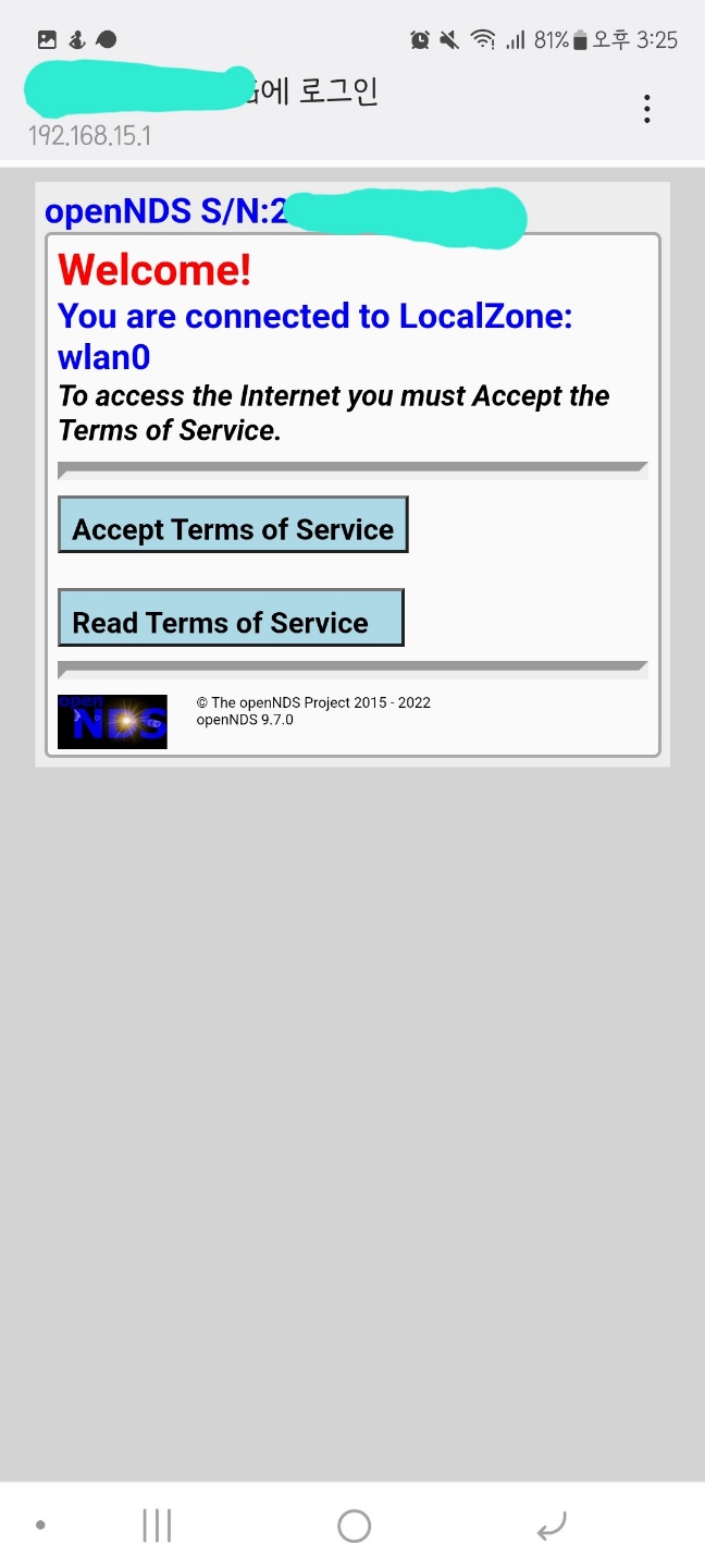 리다이렉트 주소: http://192.168.15.2/index_auth.php?authaction=http://gatewayaddress:gatewayport/opennds_auth/?clientip=[clientip]&gatewayname=[gatewayname]&tok=[token]&redir=[requested_url]