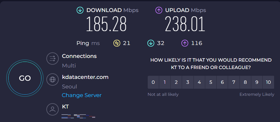 거리가 있어서 핑이 약간 높은 것 빼고는 빠른 속도로 측정되었습니다.