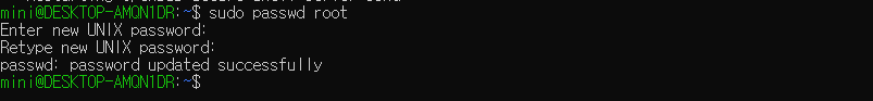 sudo passwd root => 원하는 비밀번호 입력 후 엔터 => 한번 더 입력 후 엔터