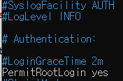 비밀번호를 통한 ssh 로그인을 허용합니다.