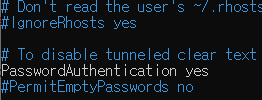 PasswordAuthentication 부분을 PasswordAuthentication yes로 설정해야 비밀번호가 걸립니다.