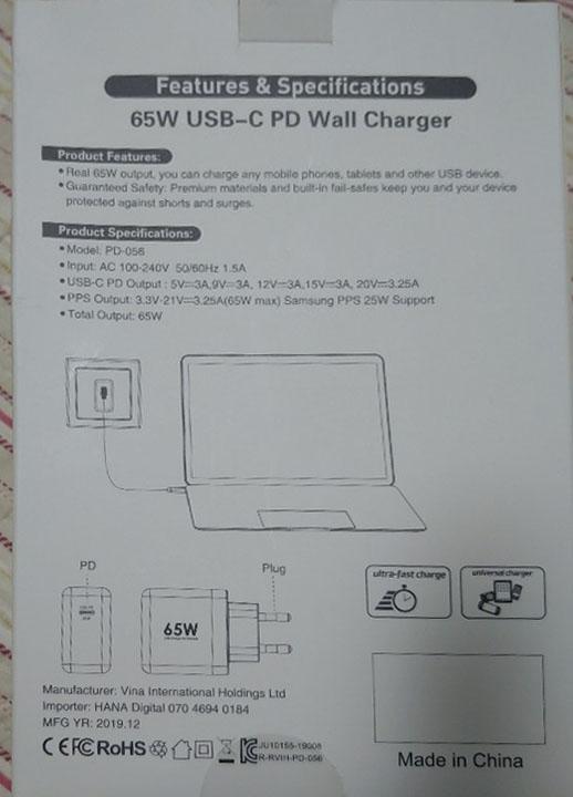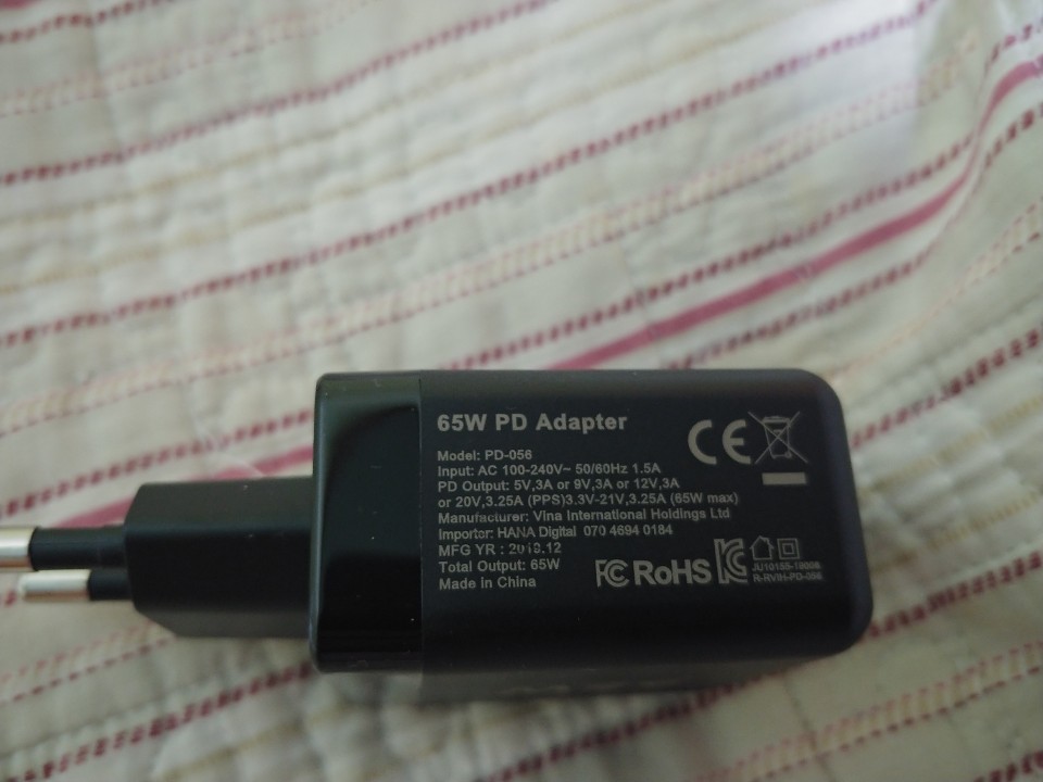 안녕하세요. 이번에는 제가 전자제품(노트북, 스마트폰, 태블릿)을 충전할 수 있는 USB PD 65W 충전기를 구매하였습니다.