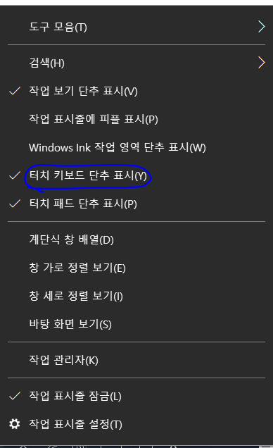 터치 디스플레이 사용시 실제 usb, 블루투스 키보드가 없어도 화상으로 키보드를 빠르게 입력할 수 있게 설정하기