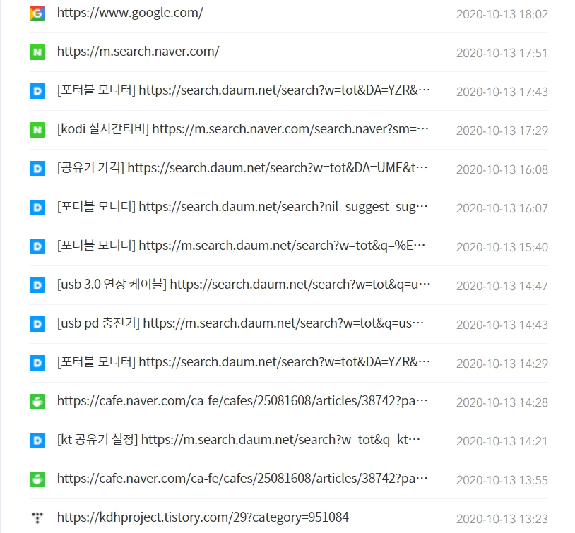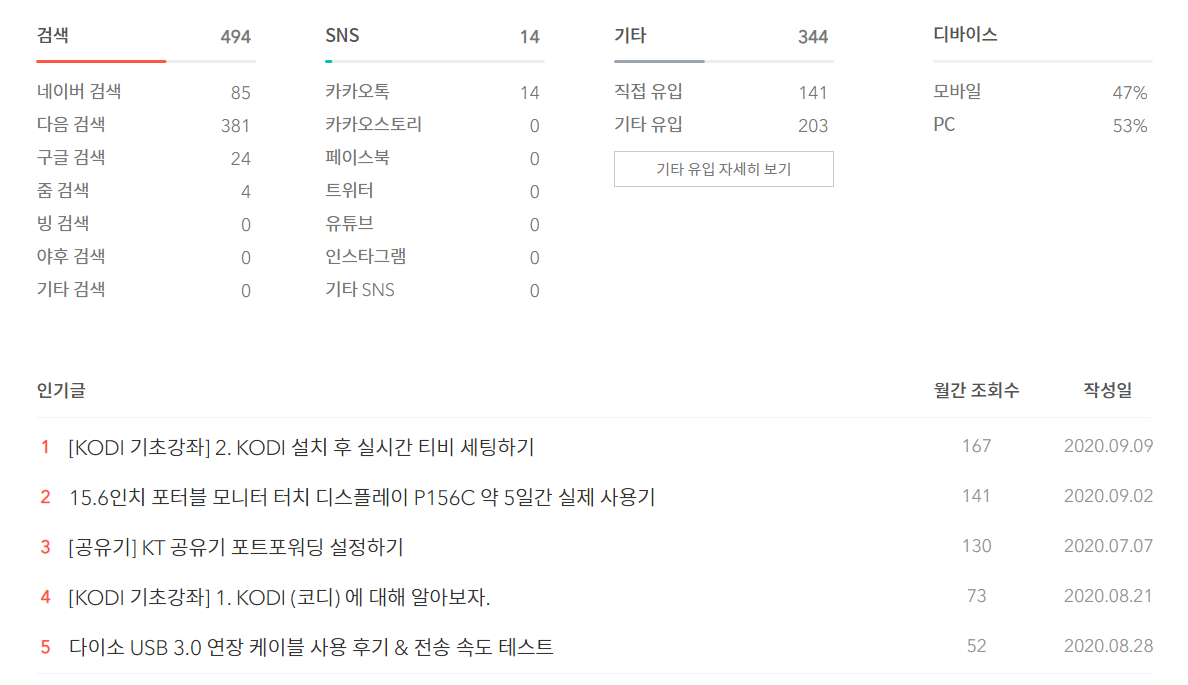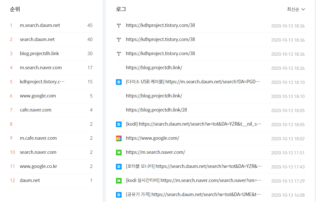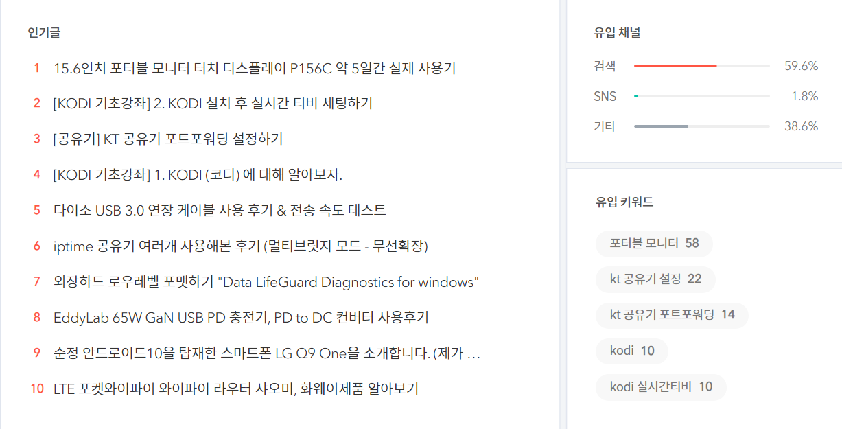 또한 블로그로 검색이 유입된 키워드 목록입니다.