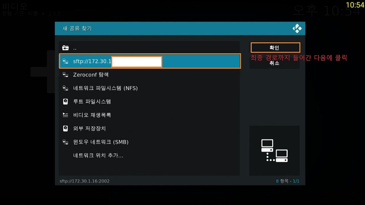 이제 코디 메인으로 나와서 영화로 들어간다면 아래와 같이 SFTP 파일 시스템이 마운트되었습니다.