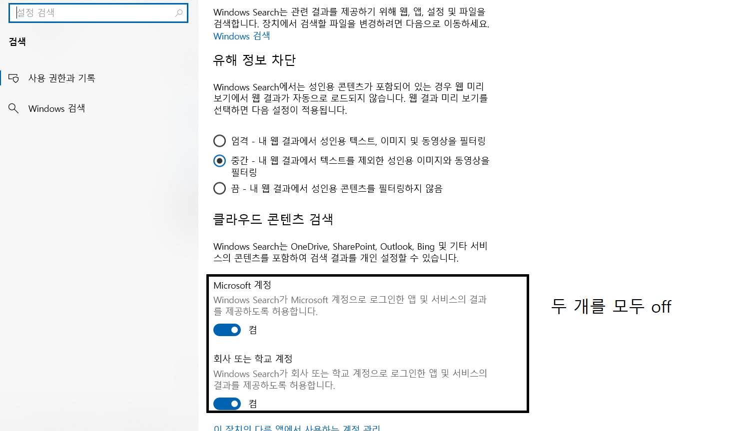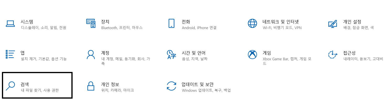 윈도우 설정에 진입 - 검색 진입