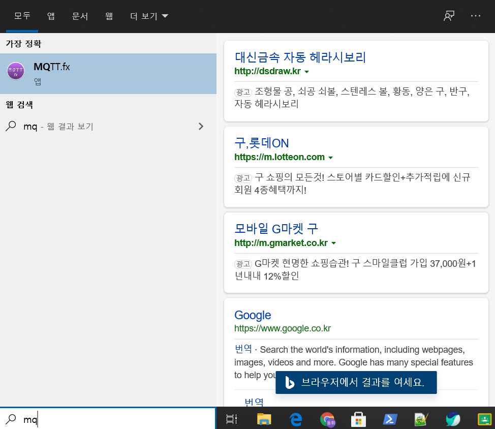 필자가 어떠한 프로그램을 실행하려고 했는데 검색창에 검색해서 실행하려니 광고가 뜨는 것입니다.