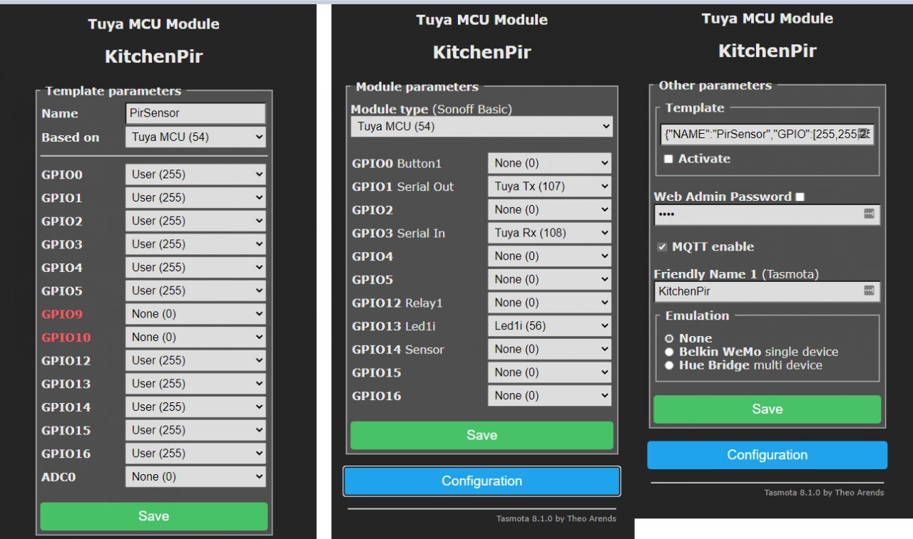 Rule1 ON TuyaReceived#CmndData=인식될때값 DO publish KitchenPir/tele/PirSensor Sensor_triggered ENDON ON TuyaReceived#CmndData=인식금지해제시값 DO publish KitchenPir/tele/PirSensor Sensor_Triggered_Cleared ENDON