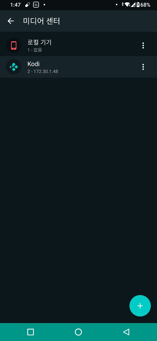 미디어 센터에서 코디가 설치된 안드tv, pc의 내부 ip와 동일한 것이 감지되었다면 선택해서 바로 추가합니다.