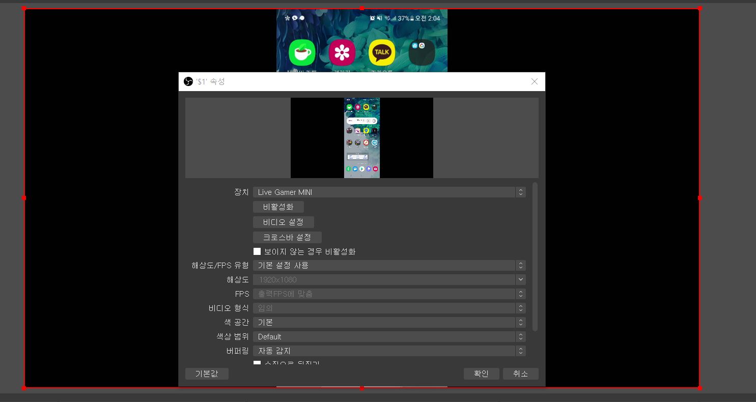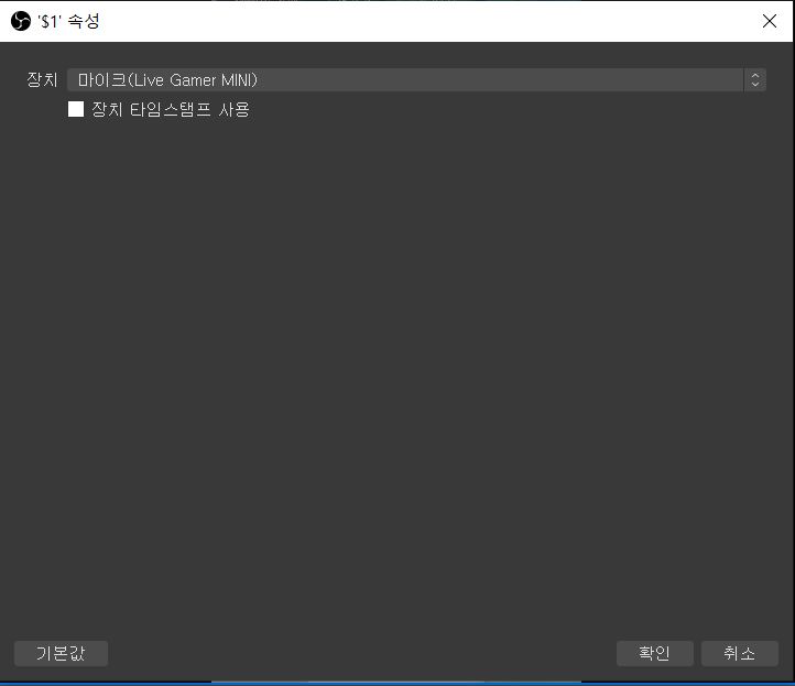 이름을 수정하고 나서, 여기서 오디오 입력 장치로 마이크가 있습니다. Live Gamer MINI를 선택 후 확인합니다.