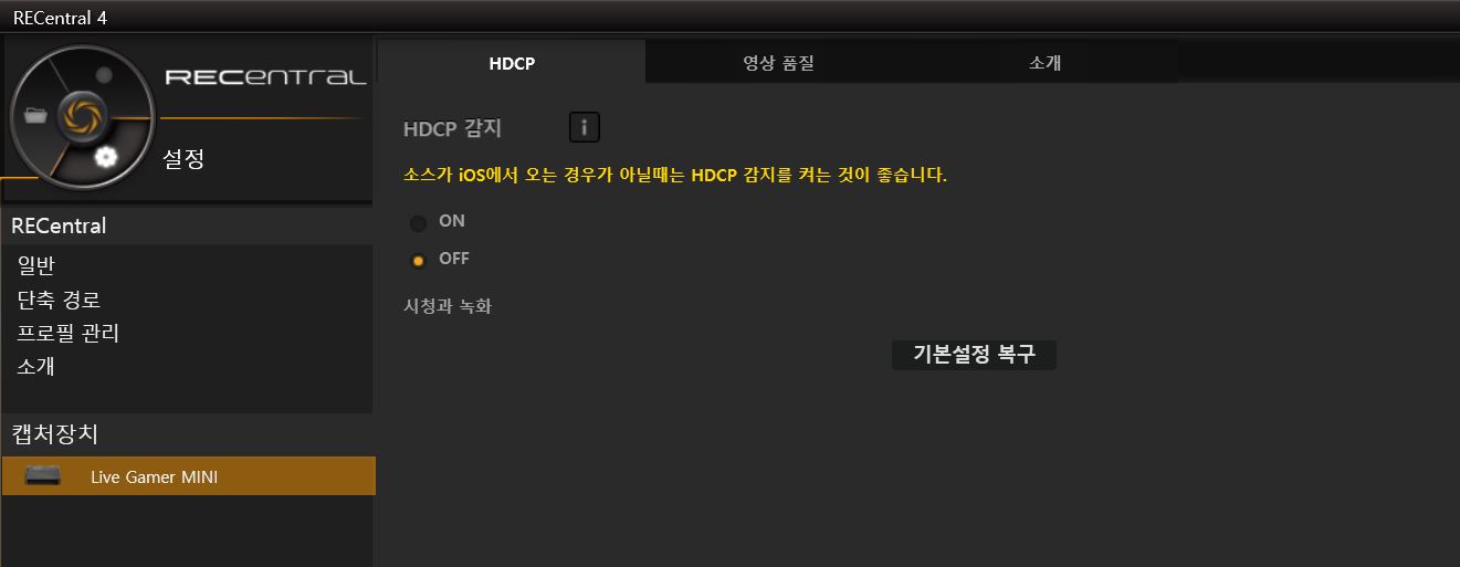 왜냐하면 이 캡쳐보드는 HDCP가 걸린 장치의 캡쳐는 제한되기 때문입니다.