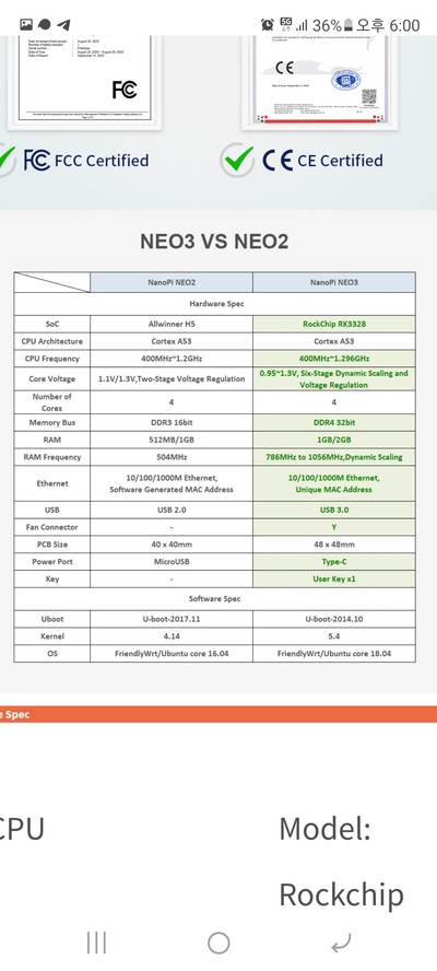 오른쪽이 RK3328이 탑재된 SBC보드의 스펙입니다.