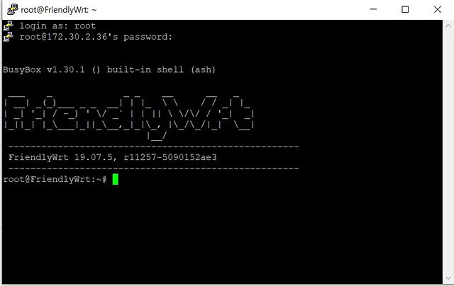 putty에서도 마찬가지로 hostname에 friendlywrt, 포트는 22이고