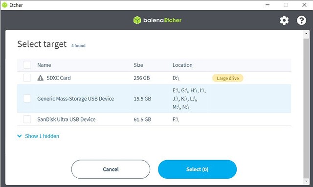 => 주로 라즈베리파이 OS 올릴 때 사용하는 프로그램인데, 그 외 장치에 OS 올리는 용도로도 적합하네요.