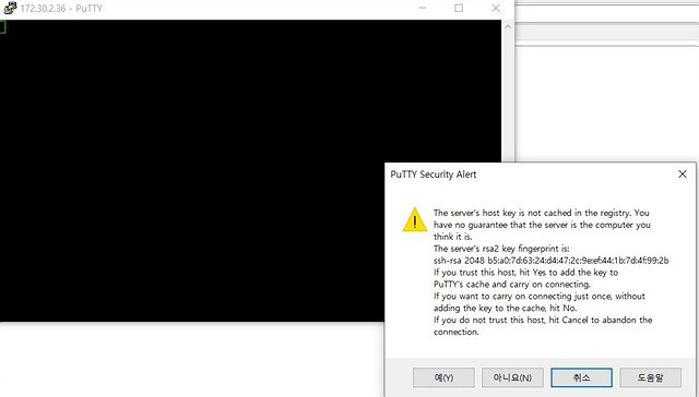 맨 처음에 172.30.2.36으로 잡혔는데, 이후 설정에서 172.30.2.150으로 수정했습니다.