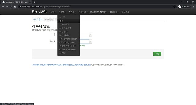 FriendlyWrt 관리 페이지 접속 후 로그인을 합니다.