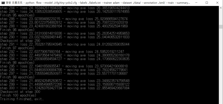 처음에는 텐서플로우로 시도를 하다가 사양이 딸리고 많이 느려서 YOLO로 다시 사물 학습(딥러닝) 중에 있습니다.