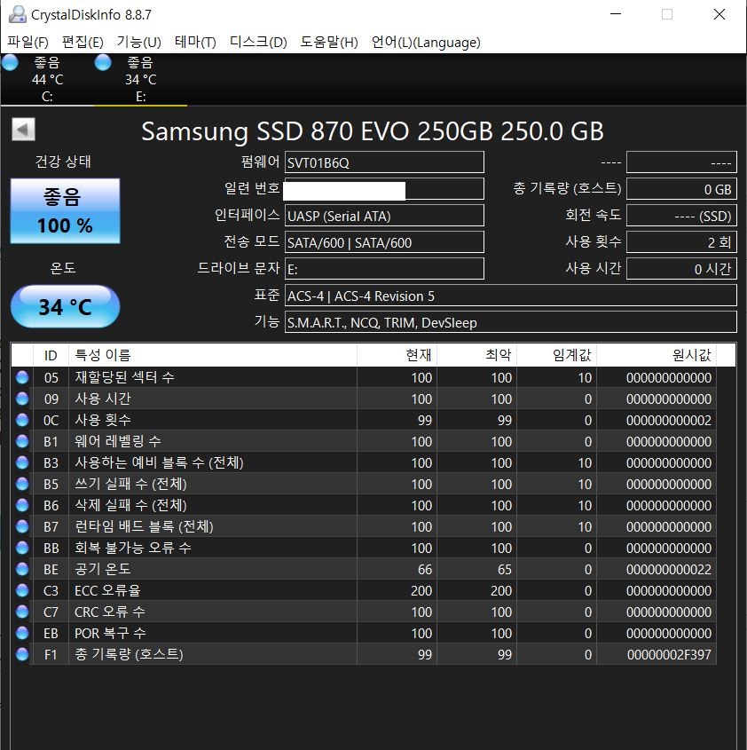 870 EVO 250GB SSD를 누크 J5005에 장착할 용도로 구매했습니다.