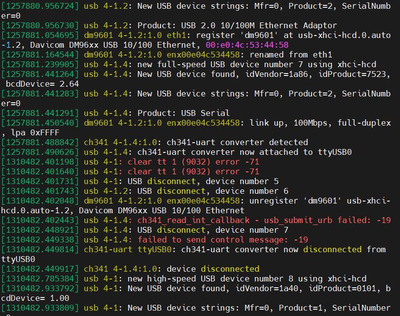 그 후 ch341_read_int_callback - usb_submit_urb_failed: -19 라는 오류가 발생하였습니다.