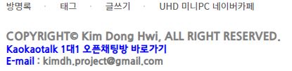 오늘은 밑에 footer 쪽을 많이 손 봤습니다. 저작권 관련 안내, 문의 가능한 이메일과 카카오톡 채팅방 주소를 적어두었습니다.