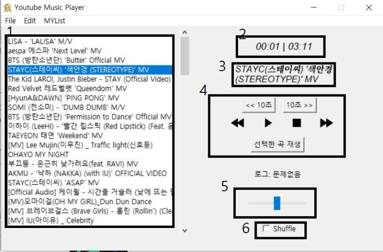 6. 랜덤 재생 체크박스 (체크시 랜덤 재생 활성화)