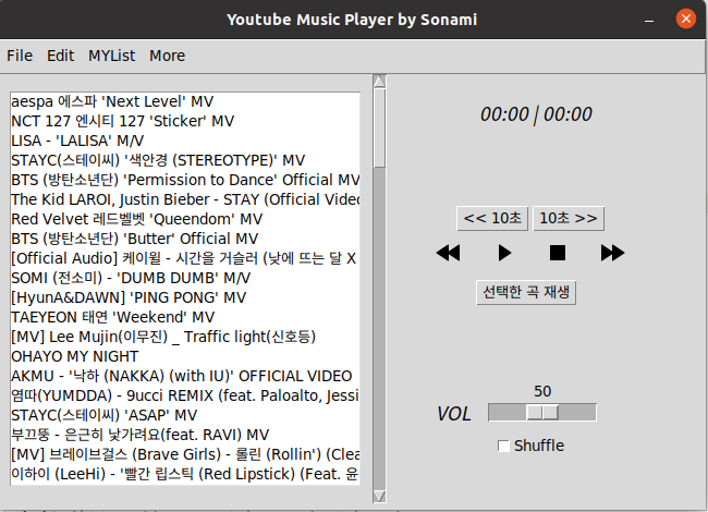 | 파이썬으로 제작한 유튜브 뮤직 플레이어 공개합니다. (1) | 2021.09.27 |
