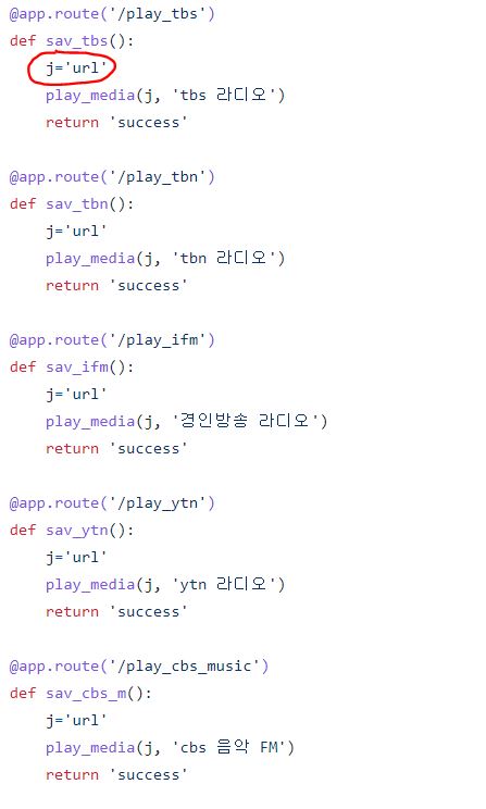 - kbs, sbs, mbc fm 외 다른 라디오는 github에서 고정 주소를 매일 0시에 다운받아놓고, 그 파일을 열어서 재생하는 방식으로 변경하였습니다.