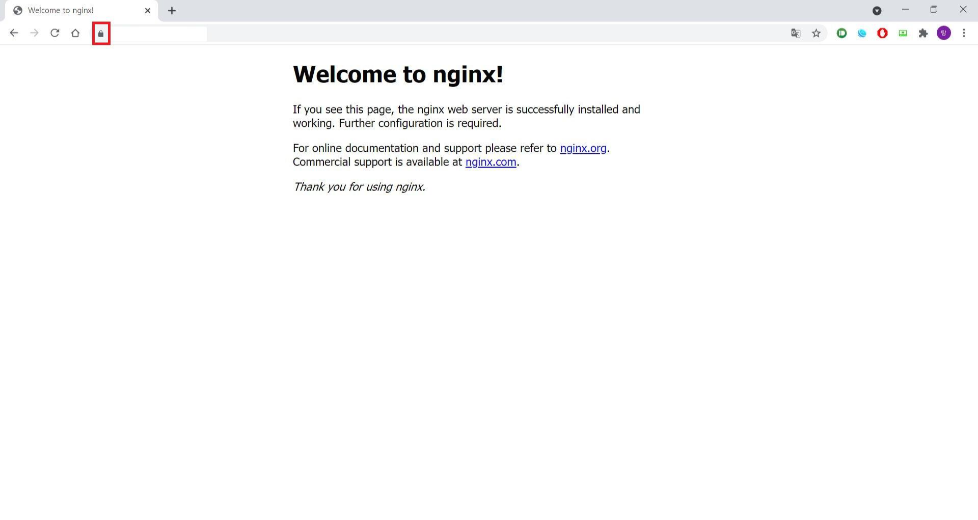 이제 https://서버ip 로 접속하면 아까 주의 요함이였던 표시가 좌물쇠 표시로 바뀐 것을 확인할 수 있습니다.